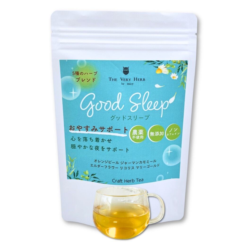 おやすみサポート ハーブティー (心を落ち着かせて穏やかな眠りをサポート, グッドスリープブレンド) 5種のハーブ 無添加 ノンカフェイン 農薬不使用 フィトセラピー(植物療法) 夜用 寝る前 毎日飲みたくなる美味しさ 【2weekセット】 ティーバッグ (2g,15包)