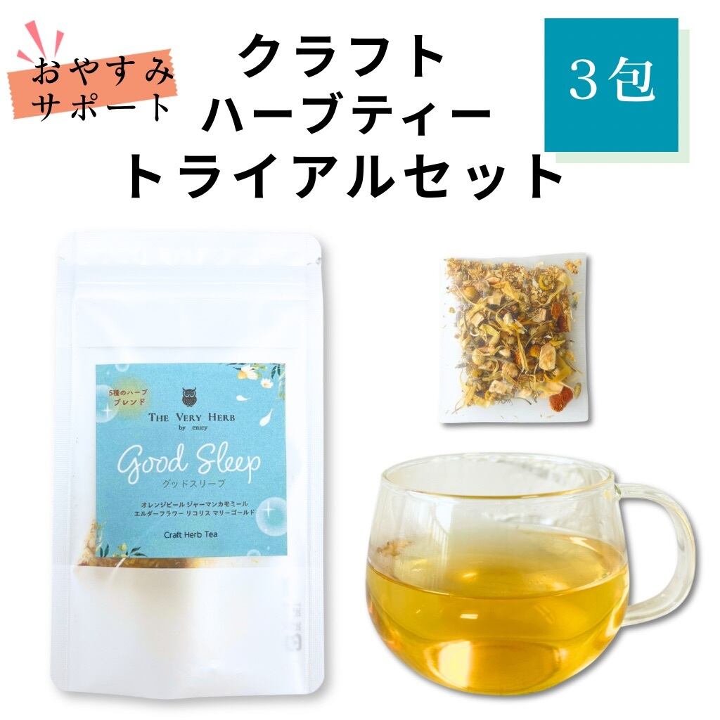 おやすみサポート ハーブティー (心を落ち着かせて穏やかな眠りをサポート, グッドスリープブレンド) 5種のハーブ 無添加 ノンカフェイン 農薬不使用 フィトセラピー(植物療法) 夜用 寝る前 毎日飲みたくなる美味しさ 【3daysセット】 ティーバッグ (2g,3包)