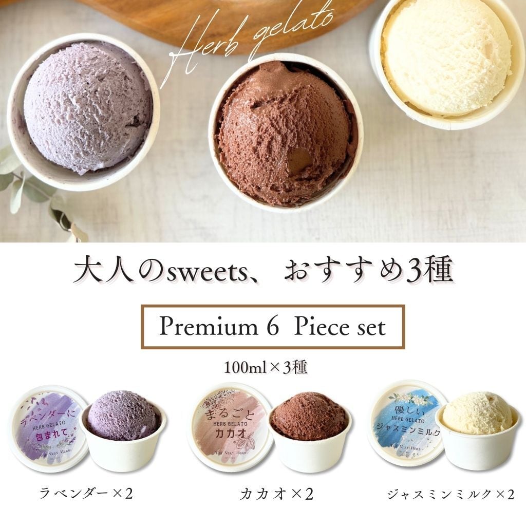 THE VERY HERB ハーブ ジェラート 心と体にやさしいジェラート 3種6個 ラベンダー カカオ ジャスミン 上品 高級 大人のスイーツ 香料 着色料不使用 自然由来 アイスクリーム クリスマス ギフト セット 冬ギフト 詰め合わせ スイーツ プレゼント 誕生日 母 結婚 出産 祝い