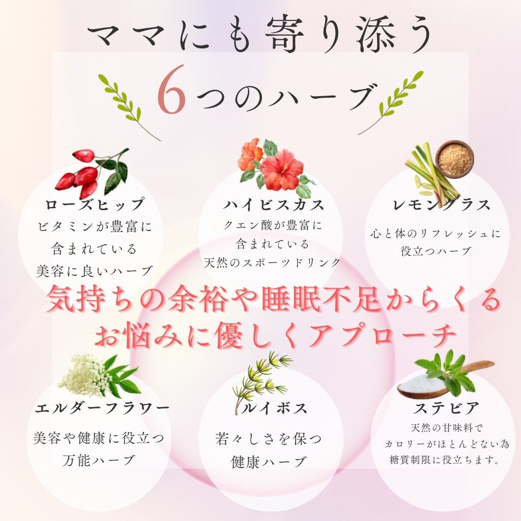 - 9種のハーブによる多彩な効果で、ママのサポートを実感