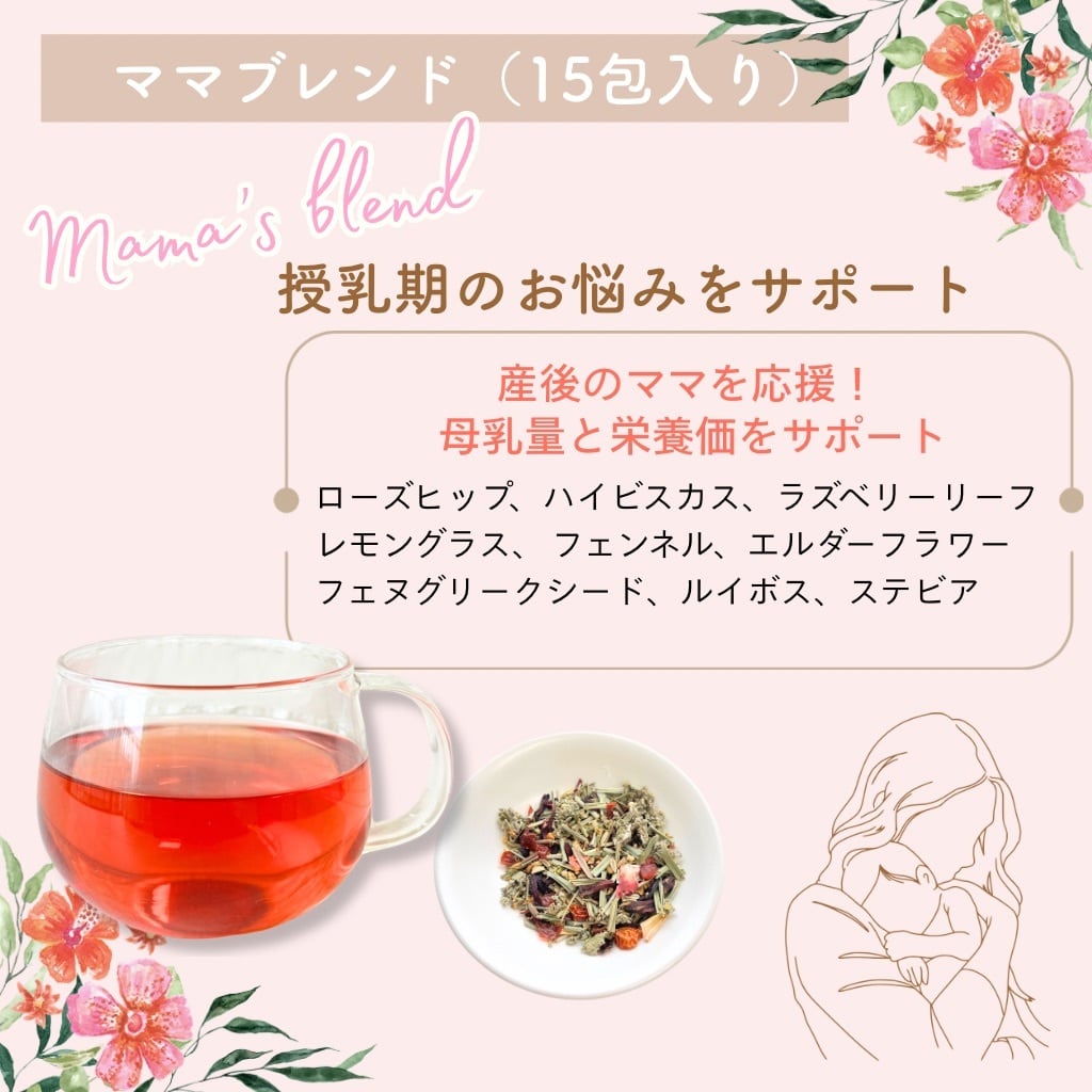 「産後・授乳期お悩みサポート ハーブティー (ママブレンド) 2weekセット」を通じて、ママに優しいひとときをお届けします。心と体を温め、毎日の生活に安らぎを与えてくれる特別な体験をぜひお楽しみください。