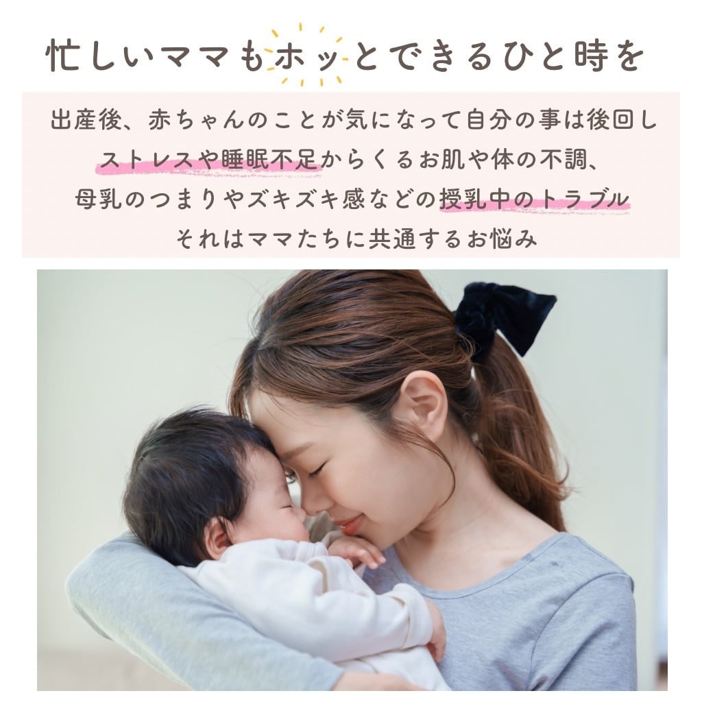 毎日のリフレッシュタイムに最適。産後、授乳期を応援!忙しい日常の中でも、ホッと一息つける特別な時間を提供します。